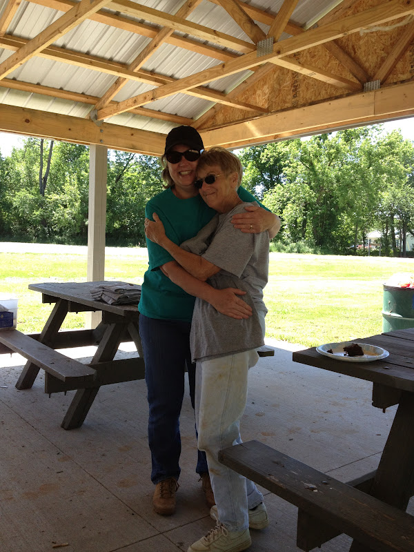 Above Trish gets a hug from Kathy. Below, siblings John and Anne are working on that ramp.